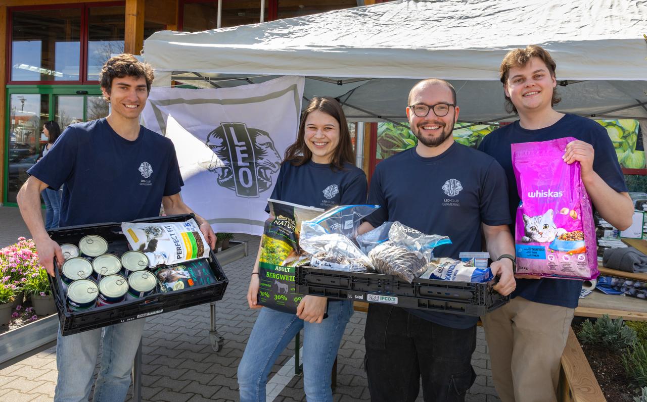 Vor einem Supermarkt werden Kund*innen von uns Leos proaktiv angesprochen und dazu motiviert, ein Teil mehr einzukaufen. Wir sammeln die Einkäufe und spenden sie anschließend zum Beispiel an die Germeringer Tafel, die Obdachlosenhilfe oder an lokale Tierschutzorganisationen.